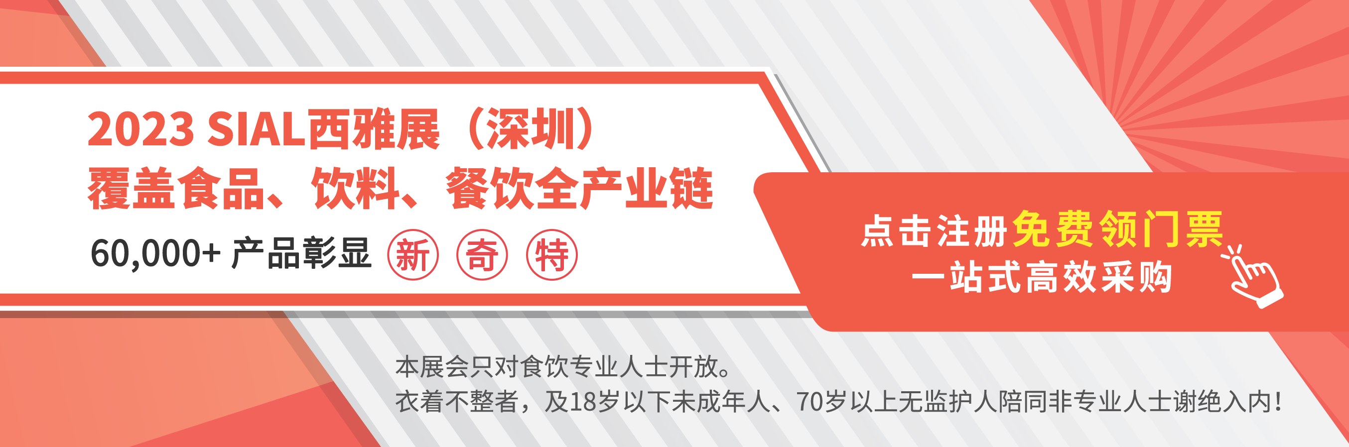 萬眾矚目的SIAL西雅國際食品展(深圳)將于2023年8月28-30日在深圳會展中心(福田)拉開帷幕!匯聚行業(yè)翹楚,引領(lǐng)前沿信息的第五屆SIAL世界食品產(chǎn)業(yè)峰會也將于展會同期權(quán)威舉辦。為助力食飲企業(yè)獲得更多高價值的合作商機和行業(yè)信息,即日起,峰會所涵蓋的5大主題論壇門票可免費領(lǐng)?。?/strong>