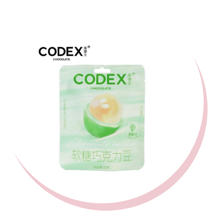| 西非加納進(jìn)口優(yōu)質(zhì)可可原料經(jīng)過36小時的精磨,讓可可本身更細(xì)膩細(xì)滑,原始醇香略帶苦味的巧克力包裹著甜軟的軟糖,一口下去雙重口感綻放在口腔,橡皮膠糖青提味口感巧克力,軟糖的甜度和柔軟質(zhì)地與巧克力豆的酥脆和濃郁巧克力味道完美地搭配在一起。這種零食通常作為小吃或甜點,也常常被用作糖果袋子里的小禮物,或作為派對上的甜點點心。 |