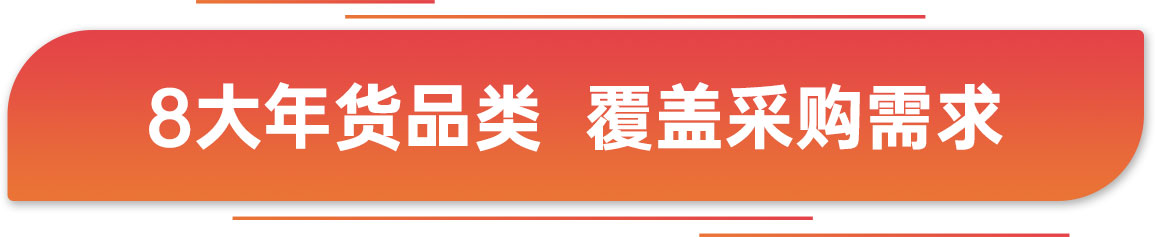 | 以食飲年貨采購(gòu)為基礎(chǔ)需求,結(jié)合當(dāng)下市場(chǎng)消費(fèi)熱點(diǎn) 打造8大年貨品類(lèi),基本覆蓋全場(chǎng)景采購(gòu)需求 |
