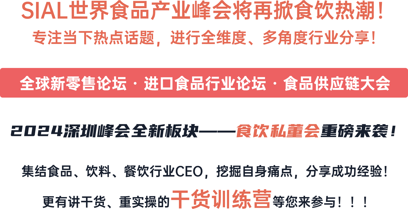 | 以“凝聚全球力量,探索可持續(xù)路徑”為主題的第七屆SIAL世界食品產(chǎn)業(yè)峰會(huì)將于9月2日-4日在深圳會(huì)展中心(福田)與SIAL西雅國(guó)際食品和飲料展覽會(huì)(深圳)同期舉辦。 |