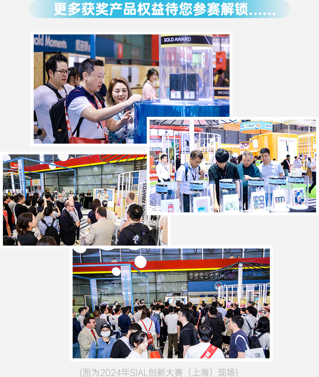 入圍產(chǎn)品可免費(fèi)使用“2024SIAL 創(chuàng)新大賽” Logo在該產(chǎn)品包裝上進(jìn)行推廣;