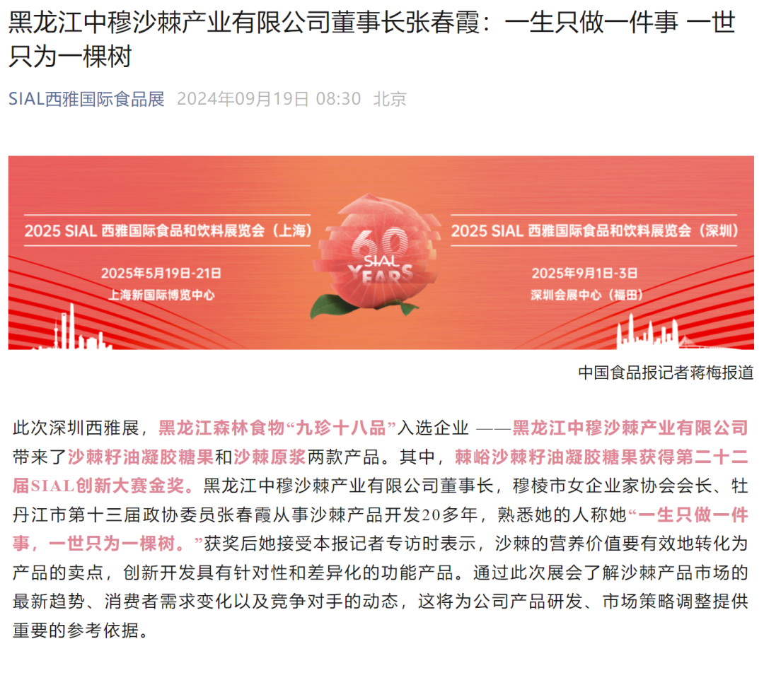 “第二十三屆 SIAL Innovation創(chuàng)新大賽”正式開賽,所有已經確認參加2025年SIAL西雅國際食品和飲料展(上海)展商(獨立展商及展團)均可通過登錄“展商中心”---參與創(chuàng)新大賽報名,報名申請將于2025年4月11日截止。