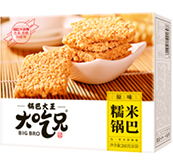 系列鍋巴產(chǎn)品,包括:糯米鍋巴、小米鍋巴、黑米鍋巴、大米鍋巴、烏米鍋巴、蛋黃鍋巴、咖喱鍋巴、海鮮鍋巴,2018年發(fā)明了地獄鍋巴和牛軋鍋巴。 |
